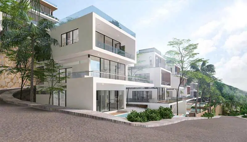 • Thiết kế: Kiến trúc hiện đại với các mảng kính lớn, sử dụng vật liệu cao cấp chịu được môi trường biển. Các căn biệt thự được phân chia thành nhiều loại (A, A1, A2, B, B1, B2) với diện tích sàn sử dụng cực kỳ lớn, có sân vườn và hồ bơi vô cực riêng biệt.